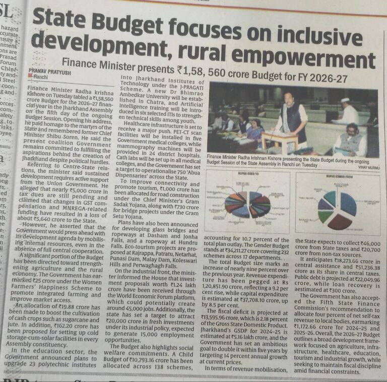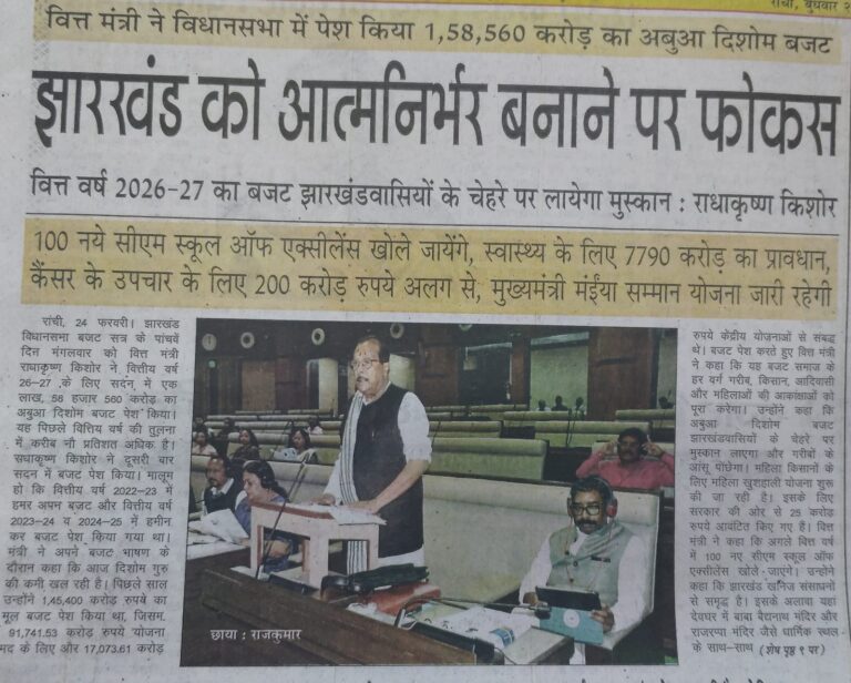 षष्ठम झारखण्ड विधान सभा के पंचम (बजट) सत्र 2026-27 की औपबंधिक कार्यक्रम