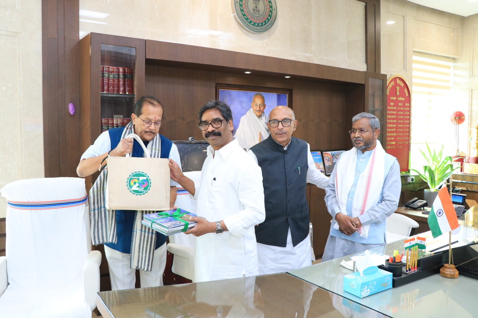 माननीय अध्यक्ष झारखण्ड विधान सभा के कार्यालय कक्ष में ‘ऐ मेरे प्यासे वतन’ पुस्तक का लोकार्पण। दिनांक – 05/05/2025
