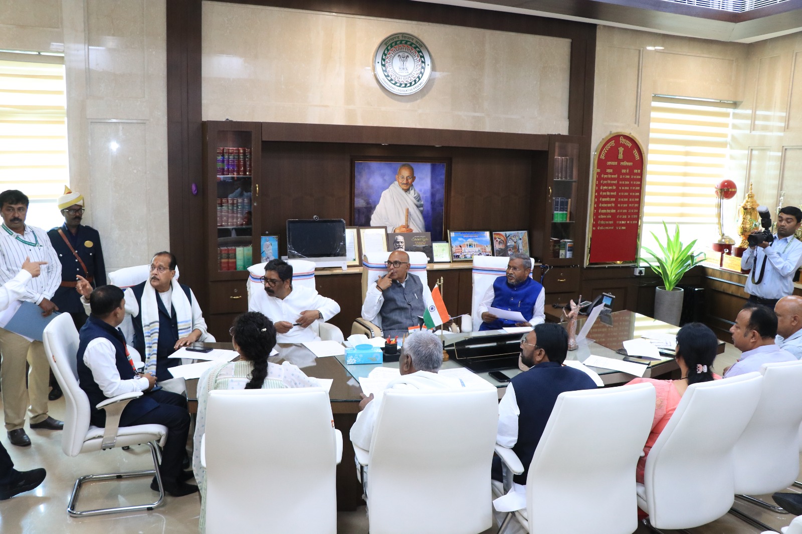 षष्ठम झारखण्ड विधान-सभा के चतुर्थ (शीतकालीन) सत्र के निमित्त विधायक दल के नेताओं के साथ माननीय अध्यक्ष महोदय की बैठक। दिनांक – 04/12/20255